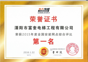 溧陽市富奎電梯工程有限公司 溧陽市富奎電梯工程有限公司是于二OO八年一月九日在原前身溧陽市電梯工程公司基礎(chǔ)上成立的,是專業(yè)從事電梯銷售安裝維修、保養(yǎng)的企業(yè)。是國(guó)家質(zhì)監(jiān)總局頒發(fā)的特種設(shè)備安裝、改造、維修A級(jí)安裝許可證單位。公司組織機(jī)構(gòu)實(shí)行總經(jīng)理負(fù)責(zé)制,公司下設(shè)管理部、銷售部、安裝維修部、質(zhì)安部、財(cái)務(wù)部,公司另外設(shè)十二個(gè)分公司:四川分公司、江蘇分公司、上海分公司、浙江分公司、湖南分公司、遼寧分公司、山東分...